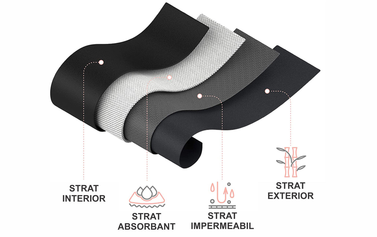 Chiloții menstruali se remarcă printr-o secțiune interioară specială compusă din 4 straturi: